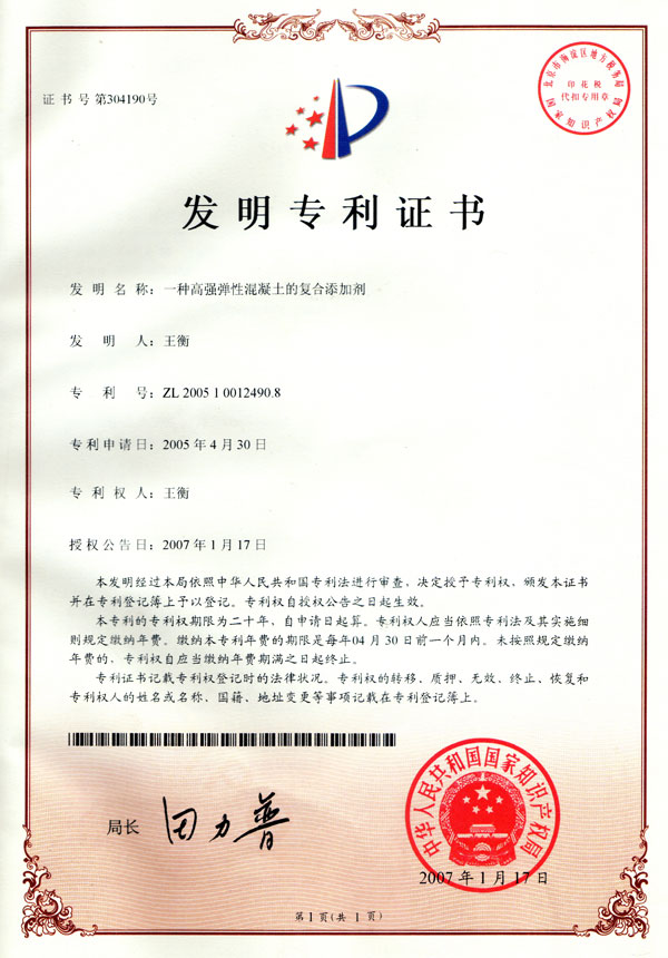 當(dāng)前位置:公司資質(zhì) > 一種高強彈性混凝土的復(fù)合添