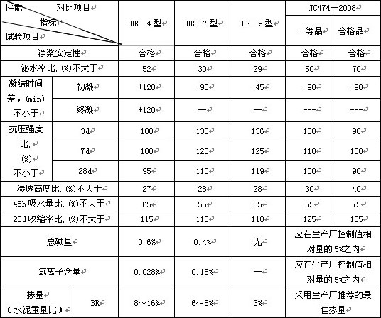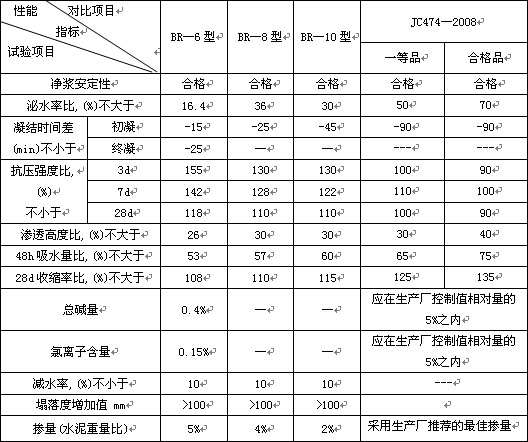 BR-4型、7型、9型與J C474-2008標準質(zhì)量對比